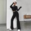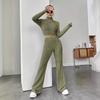 Autumn New Long Sleeve Knitted Pants Set Women Casual Solid Stand Loose Two Piece Pants Suits Women Knitwear Elegant Fashion 2 Piece Woman Sets 24706