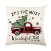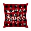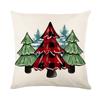Poinsettia Black Check Pillow Cover Linen Printed Christmas Tree Letter Pillow Cover Cushion Cover