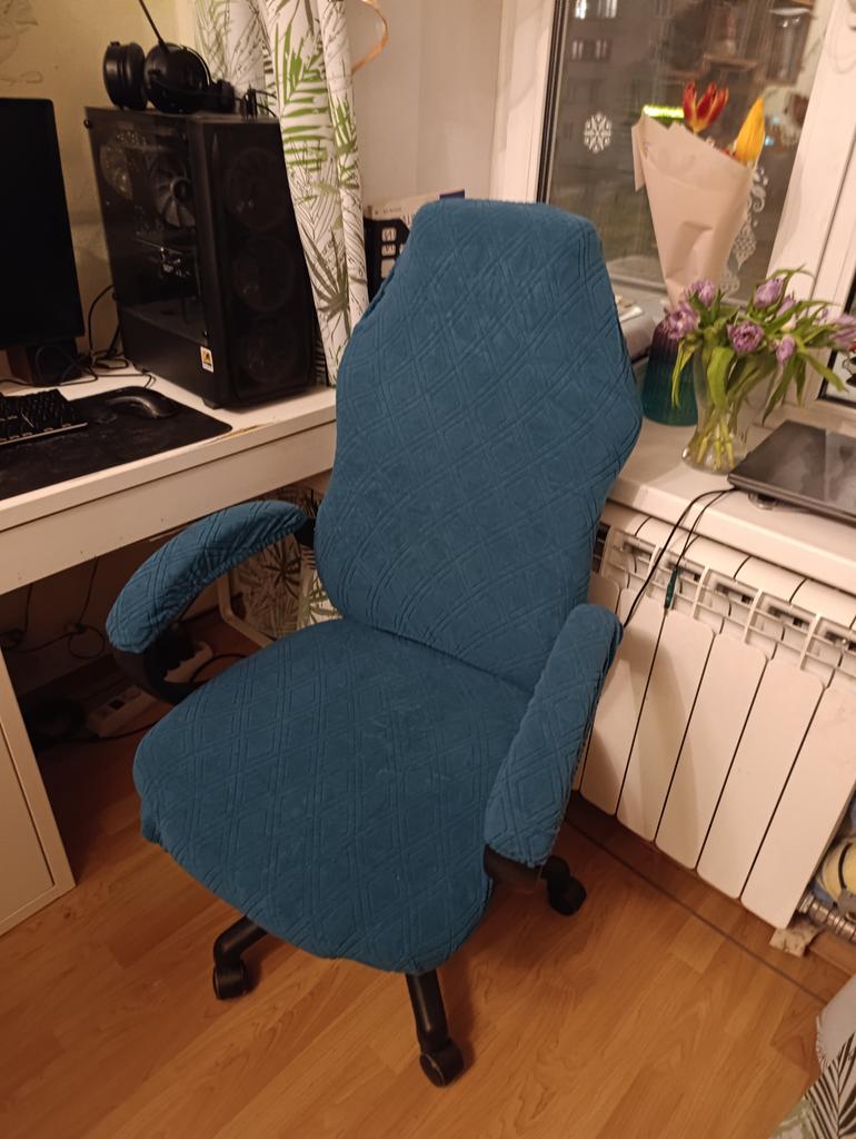 Great cover for a computer chair. The color and size correspond to the description. Pleasant to the touch.