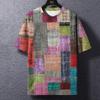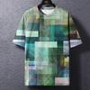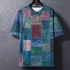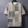 Retro Men's T-Shirt Plaid Print Tees Patchwork Clothes O Neck Short Sleeve Blouse Oversized Tops Men Harajuku Fashion T Shirts