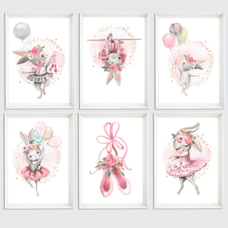 Cartoon Animal Bunny Girl Room Pink Wall Art Canvas Painting Nursery Posters And Prints Wall Pictures Baby Kids Room Décor No Frame