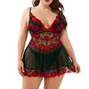 This women's set includes a lace nightgown and matching panties, featuring a deep V-neck, intricate lace cutouts, suspenders, mesh see-through design, and a tantalizing backless style.