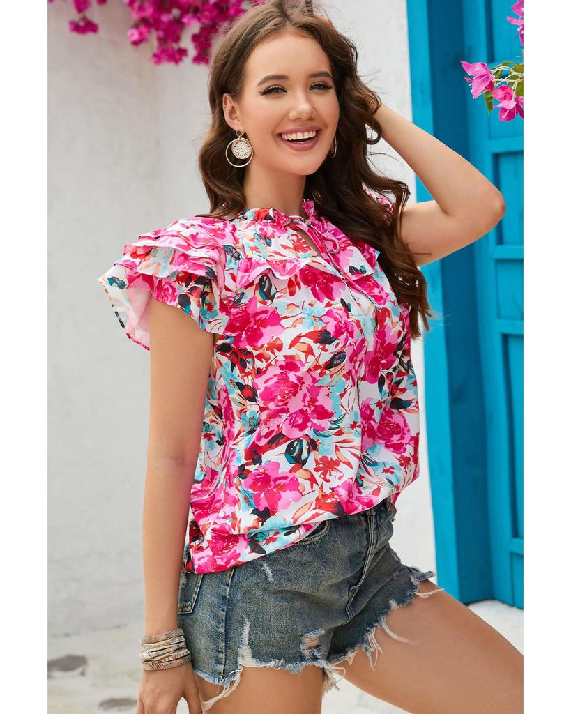 Azura Exchange Ruffle Flutter Sleeve Floral Print Blouse