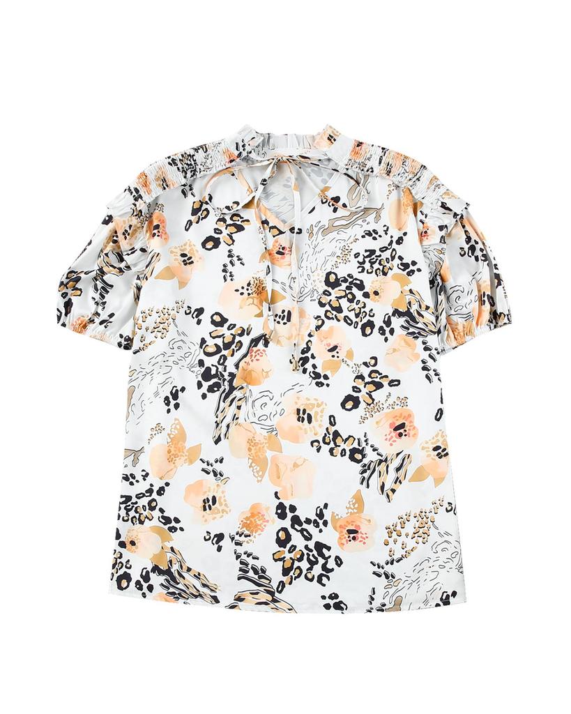 Azura Exchange Leopard Floral Print Puff Sleeve Blouse