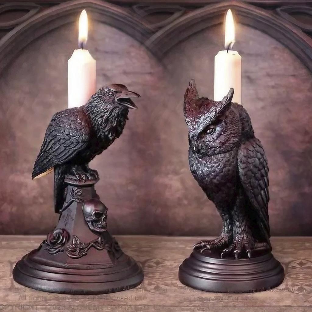 Retro Candlestick Holder Gothic Animal Candle Holder Black Bat Wolf Leopard Crow Cat Halloween Fun Atmosphere Home Decoration