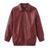 Fall Winter Women Lapel Collar Long Sleeve Slim Fit Zipper Pu Leather Jacket