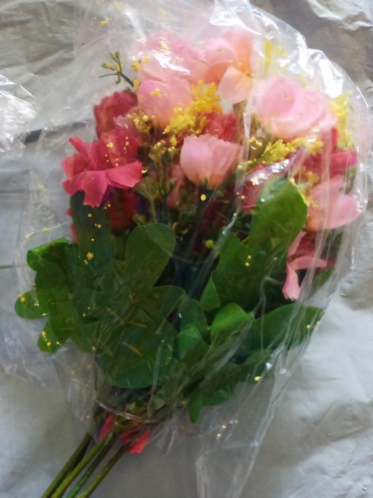 A lot of debris falls from the bouquet. Unpacking should only be done outside. The price corresponds to the quality.