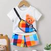 Summer Girls' Tee Trendy Preppy Kids Outfit Cute Slant Bag Bear Girls' Holiday Casual T-Shirt Set Home Pajama Set Ice Silk Set