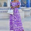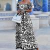 YYFS Women's Fashion Spring Fall Bohemia Print Short Sleeve One Shoulder High Waist Casual Dresses