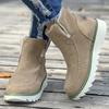 Women's Plush Lined Snow Boots, Round Toe Slip On Flat Short Boots, Winter Warm Outdoor Ankle Boots