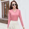 New Korean V-neck Solid Color Long-sleeved T-shirt for Women Slim Bottoming Shirt Spring Top For Ladies