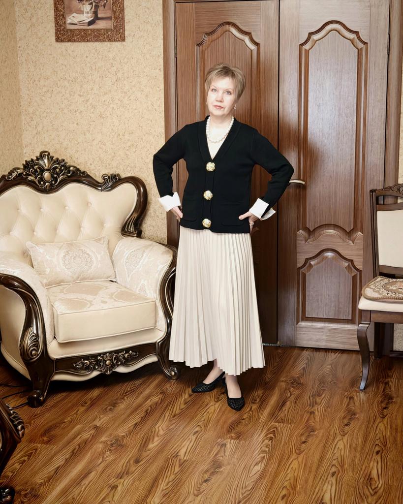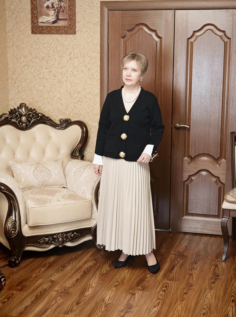 A good classic black cardigan. High-quality knitwear, neatly sewn. But the cuffs are not as in the photo, the sleeve is made differently, and there are not 4 buttons on the sleeve, but 3.