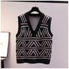 Vests Women V-neck Patchwork Korean Preppy Style Elegant All-match Femme Loose Harajuku Chic Sleeveless Sweaters Outwear Casual