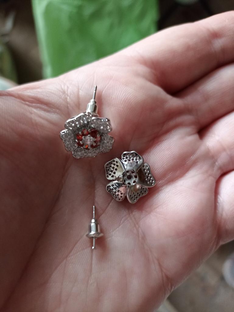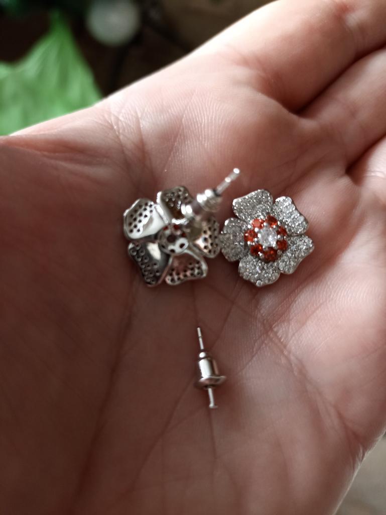 Bling Flower Stud Earrings Full Cubic Zirconia Ear Accessories for Women Shiny Red Earrings Fashion Jewelry