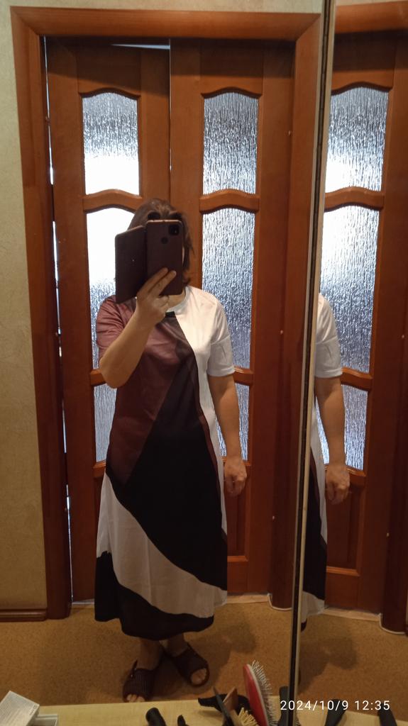 I received the expected parcel, everything is as in the picture, the dress is bright, but one size larger, I will sew it and shorten it to the knees, because it is below the knees. Mine are 96×80×110. Of course, synthetics, but I wanted such a color scheme for the summer. Thanks to the seller and the store. I recommend