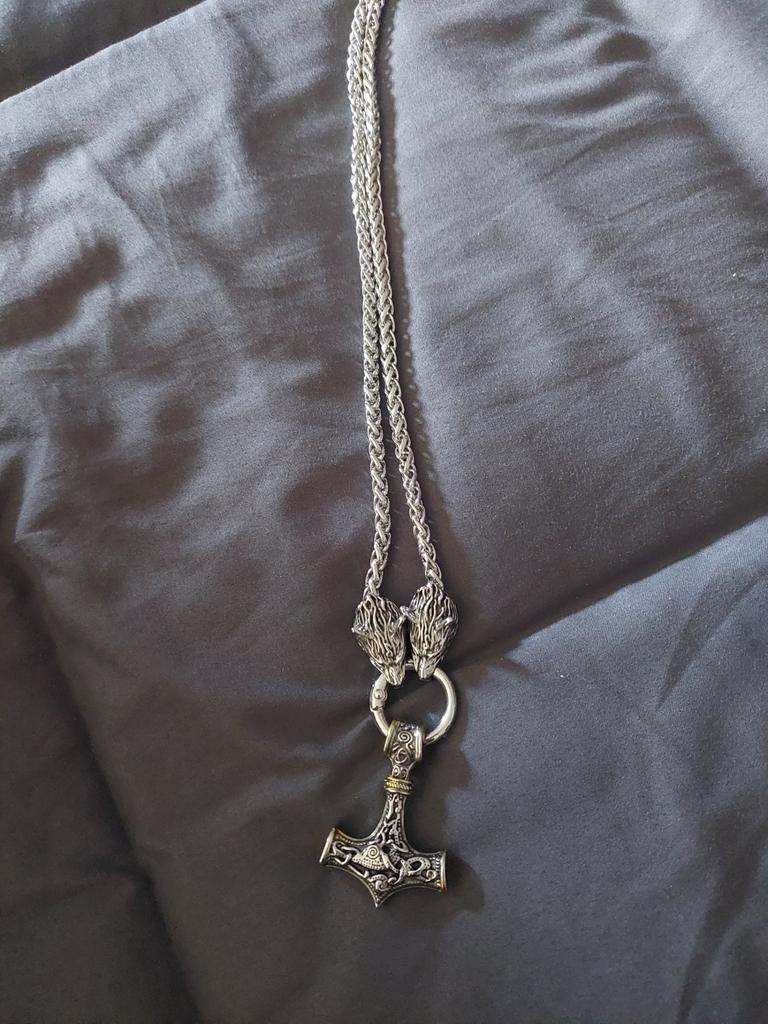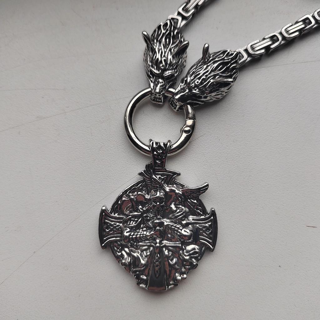 1pc Vintage-Inspired Stainless Steel Nordic Viking King Chain Pendant Necklace - Fashionable Trendy Wolf Head Design
