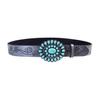 Designed with detachable elements, you can easily customize this belt by switching out the buckle or belt to suit your personal style. The faux turquoise color and concho shape bring a retro Western vibe that pairs perfectly with cowgirl hats, boots, or other western accessories.