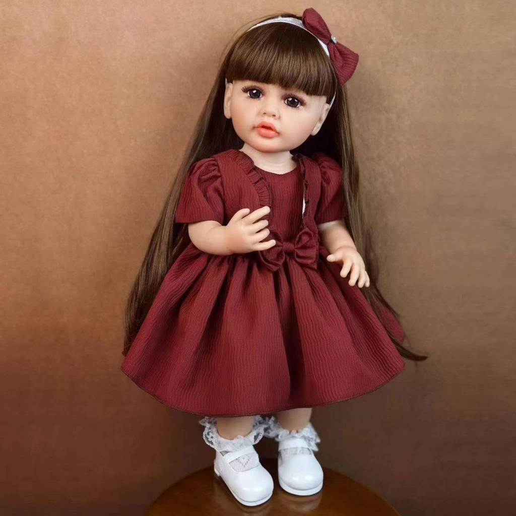 KEIUMI Reborn Baby Dolls Girl Playmates Toy 55 Cm Long Brown Hair Princess Bebe Reborn Doll Fashion Birthday Easter Gifts