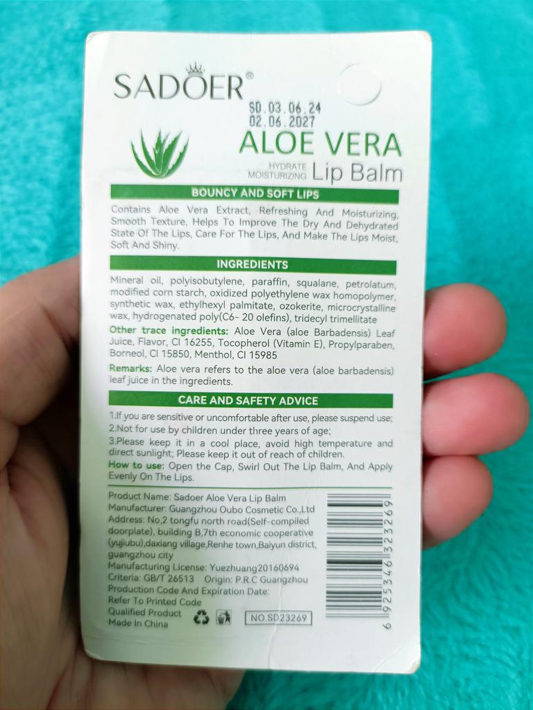Aloe Vera Lip Balm SADOER Vitamin C Prevents Dry and Chapped Lips Hydrating Moisturizing Lip Balm