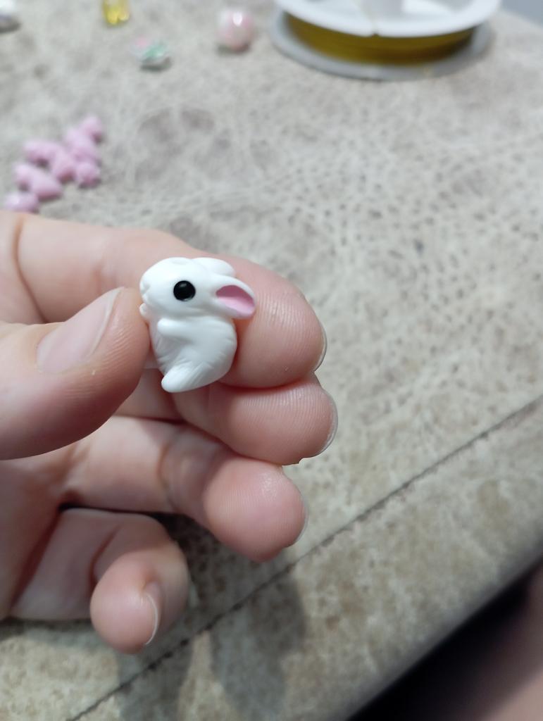 Abstract Bunny White Ceramic Cartoon Beads Handmade Material Jewelry Accessories