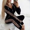 Fall and Winter New Women's Leopard Print Zipper Sweater Pants Plus Size Suit