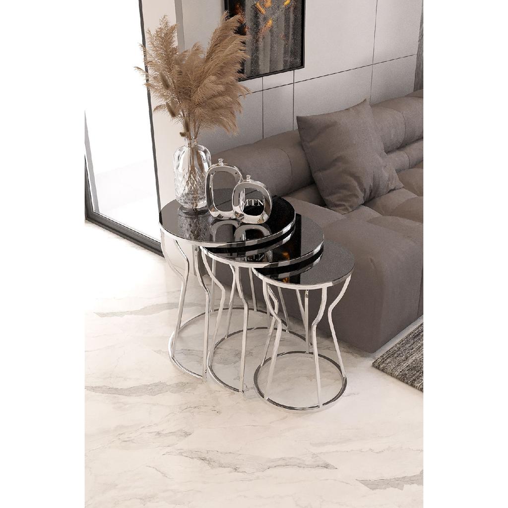 Set Of 3 Hourglass Nesting Silver Foot Smoked Mirror