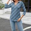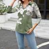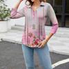 Women's Fashion Casual Long Sleeve Floral Print V-Neck Button Top