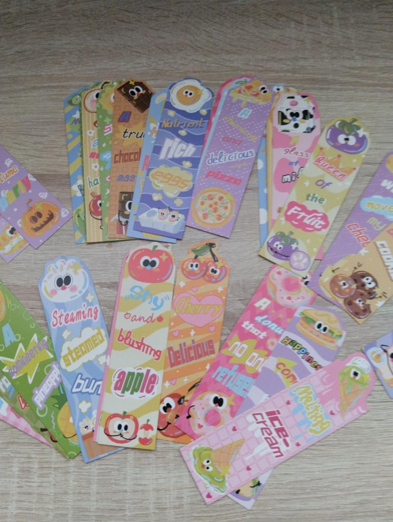 30pcs Cartoon Food & Fruit Series Bookmarks, Colorful Fun Reading & Labeling Paper Cards for Reading and Food Lovers