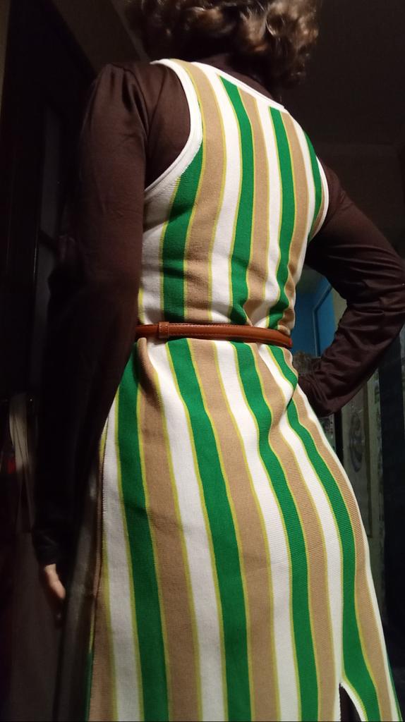 Just right for a 46. Ankle length. Looks good with any belt and without one. Only the bottom was sewn incorrectly, one side was rounded... Now I'm thinking what to do about this 😕