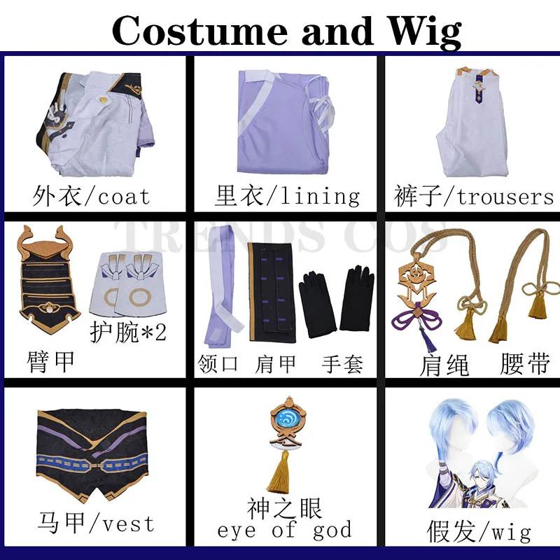 Jacquard Fabric Kamisato Ayato Cosplay Costume Game Suit Full Set Deluxe Halloween Outfits Wig for Men Comic Con