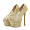 Eilyken Fashion Lace Mesh Platform Pumps Women High Stiletto Heels Peep Toe Night Club Party Stripper Shoes