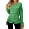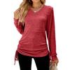 2024 European And American Autumn And Winter New Solid Color Long Sleeved V-Neck Pleated Loose T-Shirt Top For Women