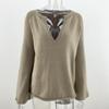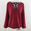 IHUASU Women's Autumn and Winter Solid Colour Pullover Jumper Temperament Commuter V-neck Large Size Loose Knit Sweater
