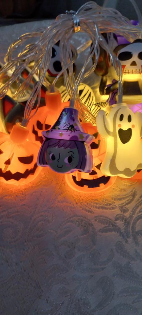 Halloween 10/20 LED Battery Powered String Lights With Ghost Witch Cat Pumpkin Spider Web Skeleton Mummy Pirate Shape Indoor