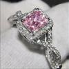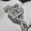 Classy Promise Ring Silver Plated Inlaid Shining Zirconia In Rectangular Shape Multi Colors For U To Choose Engagement/ Wedding Ring