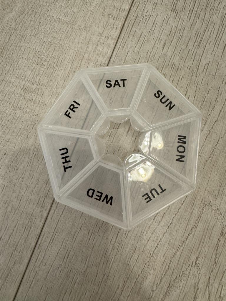 Nice pill box. Folds open. More for small pills.