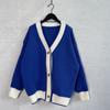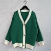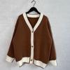 Color Blocking Cardigan V-neck Sweater Women's Loose Knitted Coat Large Size Knitwear Soft Fabric Warm Comfortable Harajuku Style Autumn Winter
