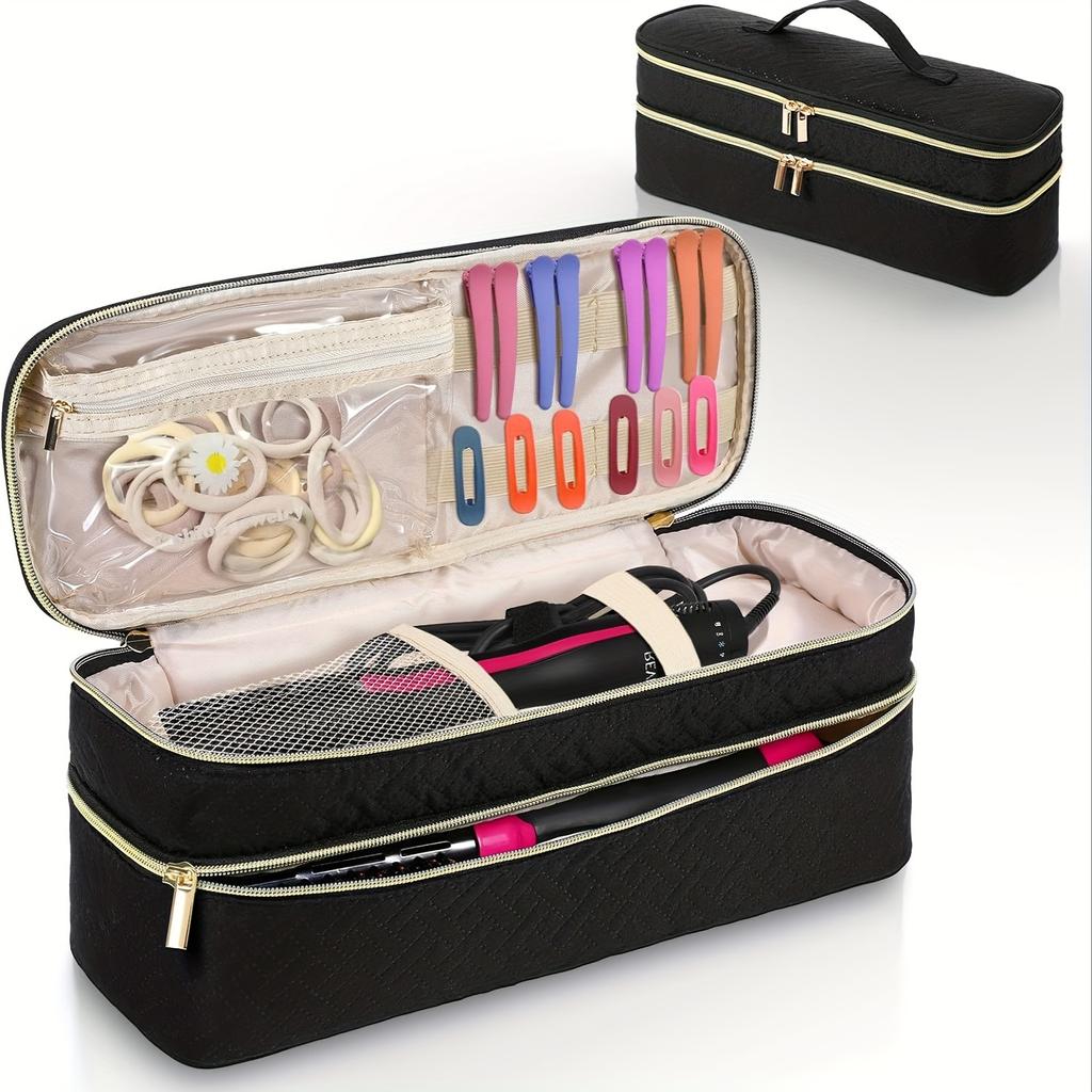 Unisex-Adult Polyester Cosmetic Bag Shark Flex Style Portable Double-Layer Travel Organizer Case, Non-Waterproof Unscented Storage for Hair Dryer
