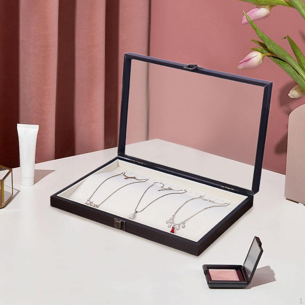 - 【Multiple Functions】: The Necklace Organizer Box with Clear Lid Velvet Tray is suitable for jewelry display and jewelry storage, suitable for storing and displaying necklaces, earrings, bracelets, pendants, and other jewelry pieces