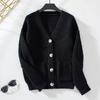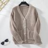 Autumn and Winter Women's Loose Casual Solid Color V-neck Single-breasted Knitted Sweater for Women