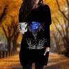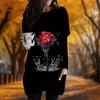 New In Autumn Water Rose Print Plus Size Dress Women O'neck Long Sleeves Casual Pocket Dresses