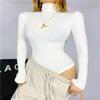 Slim High Neck Long Sleeved Jumpsuit for Women In Autumn and Winter Solid Color Versatile T-shirt Base Sexy Top