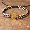 Handmade Natural African Stone Beaded Boho Yoga Wrap Bracelet &Bangle Stainless Steel Tree Of Life Braided Charm Bracelet