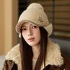 Women's Autumn Winter Thick Fur Ball Knitted Cap Solid Color Baseball Cap