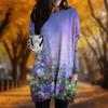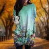 New In Autumn Oil Painting Flowers Print Plus Size Dress Women O'neck Long Sleeves Casual Pocket Dresses