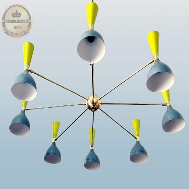 Sea Green Diablo Light | Handcrafted Illumination | Multidirectional Brass Chandelier With 8 Pair of Shades Stilnovo Lamp