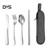 Stainless Steel Cutlery Set 4-Piece Retro Tableware Fork Spoon Chopsticks Knife with Storage Bag Mirror Polished Dishwasher Safe Cutlery Set for Home