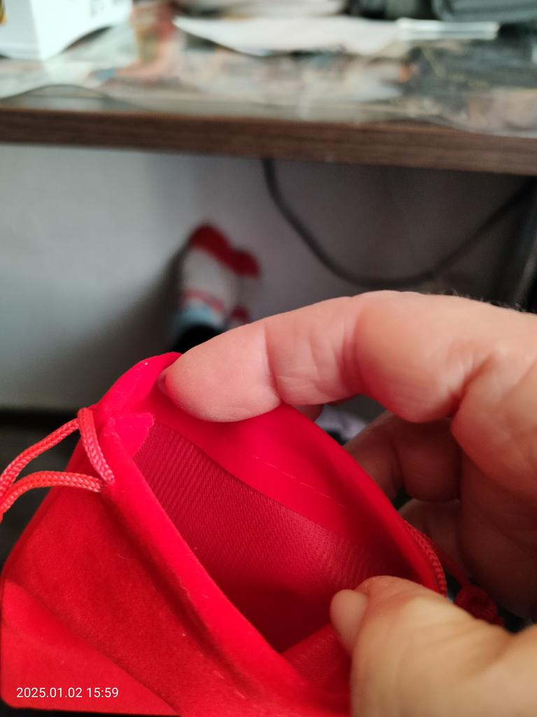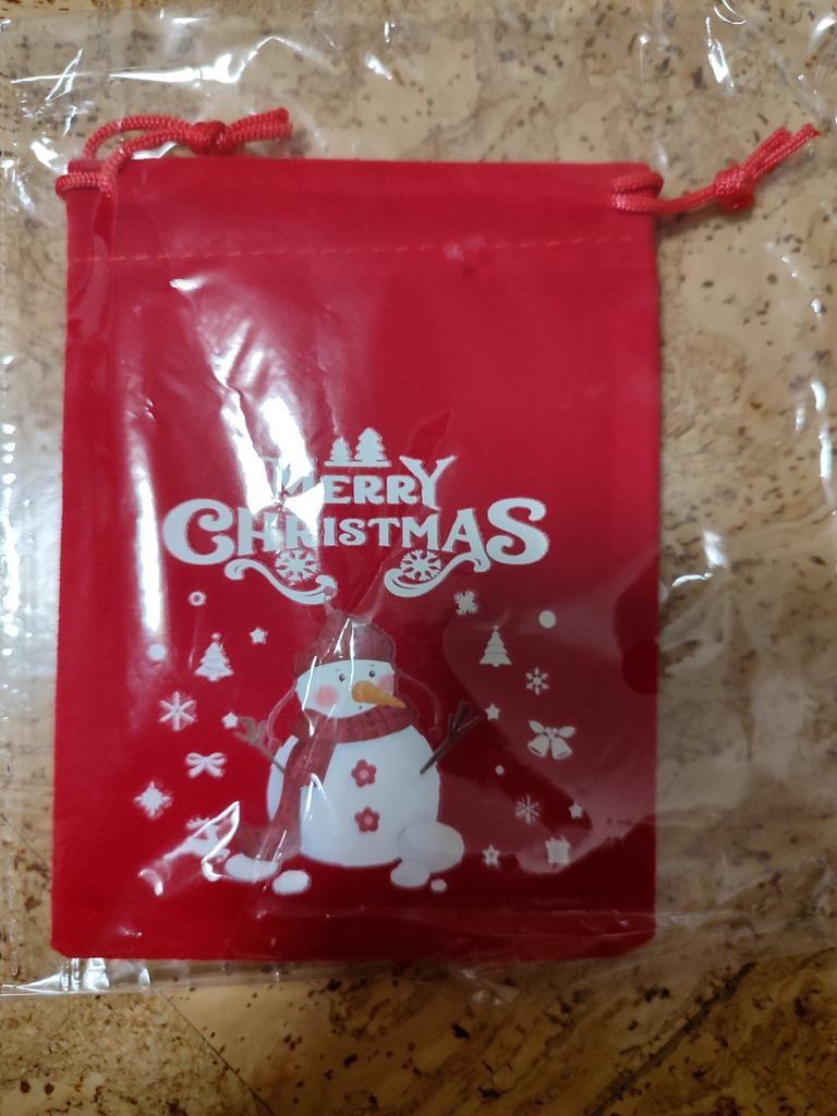This is a gift bag made of velvet fabric, red color.. The drawstring is missing. But, he is small.