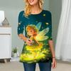 Plus Size Women Flower Flower Fairy Print Round Neck Casual Loose Long Sleeve Top
