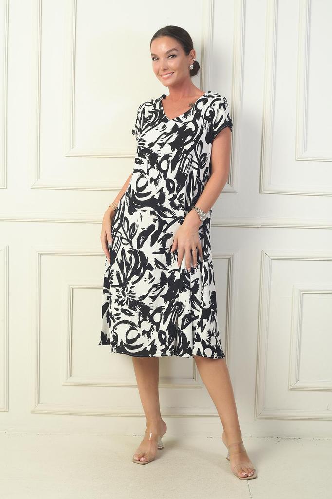Women's V Neck Abstract Patterned Viscose Dress